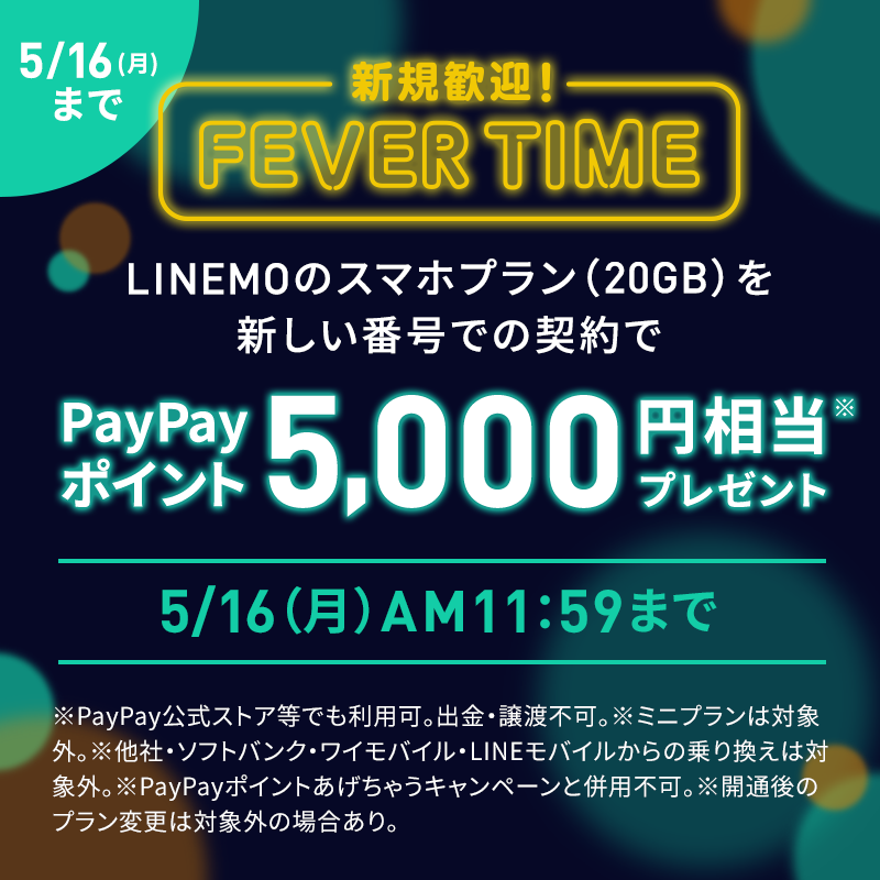 LINEMOのキャッシュバックは??【5月】